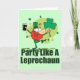 Ce design amusant pour la Saint-Patrick représente un lutin à l'air idiot tenant un trèfle géant et un verre de bière avec la légende "Faire la fête comme un lutin".