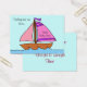 Une jolie image de voilier à l'avant vous permet de customiser le nom indiqué sur la voile. Sur le dos, vous pouvez entrer les renseignements sur la naissance de votre bébé.