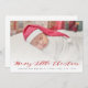 carte de faire-part de naissance de vacances avec lettrage de script rouge et image bébé mignonne, le texte et les couleurs peuvent être personnalisés.