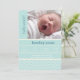 Customisez cette carte de faire-part de naissance bébé moderne et chic avec la photo et les détails de votre bébé doux. La carte comporte un motif de chevron bleu.