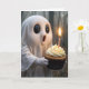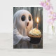 Une figure fantomatique se dresse dans une forêt brumeuse, tenant un cupcake orné d'une seule bougie d'anniversaire éclairée