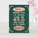 This cute greeting card features a deep forest green background with small golden-yellow leafy branches in each corner, like a simple frame. In the center, the message reads: “THERE is NOBODY ELSE I’D RATHER LIE IN BED AND LOOK AT MY PHONE next to.” The word “THERE” is in red block letters and sits inside a cream-colored oval with a hand-drawn outline near the top of the layout. Most of the sentence is in white sans-serif letters, and the word “BED” stands out with a soft blush pink shadow that gives it a little depth. At the bottom, “next to” switches to dark green script and is placed inside a blush pink oval. The overall look feels modern and funny, but still sweet and affectionate, like something you’d give to a partner or close friend ❤️💌🍫.