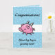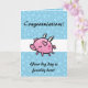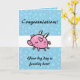 Une carte de voeux avec un cochon rose avec des petites ailes blanches, sur un arrière - plan couvert de confettis bleu Ajoutez votre propre texte à vos besoins !