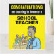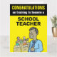 Carte d'enseignant. Dites Félicitations pour la formation de devenir enseignant à quelqu'un qui est asiatique et a obtenu son diplôme et est qualifié comme enseignant enseignant des écoliers.