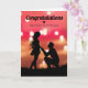 Félicitations élégantes pour votre carte de voeux enegagement, avec un coucher de soleil romantique, un petit ami qui propose à sa petite amie, et un modèle de félicitations moderne.
