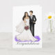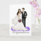 Carte de félicitations pour les jeunes mariés. Elle représente un couple brun aux tenues de mariage. Jolie carte de vœux pour mari et femme à offrir au couple marié. Les mots peuvent être changés par vos soins. Cette carte de félicitations de mariage est parfaite pour accompagner le cadeau de mariage. Vous rendrez le mari et la femme vraiment heureux avec le message spécial que vous pourrez écrire à l'intérieur de cette carte d'illustration de mariage.