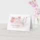 Jolie carte de félicitations pour une nouvelle petite fille. Un fil à linge séchant avec des vêtements pour bébé, un bib, un lapin, et avec un rose ornithologique décore cette carte parfaite à donner à quelqu'un qui s'y attend. Design © 2015 Julia Bryant.