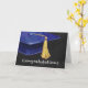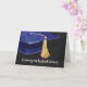 Vous ou quelqu'un que vous connaissez êtes diplômé ! Yay ! Envoyez vos félicitations avec notre design élégant avec notre art original d'une casquette de graduation bleue avec un moule jaune contre un arrière - plan noir texturé et le mot, Félicitations sur le fond. Conception personnalisée disponible.