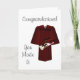 Casquette et robe rouges avec le diplôme. Textes personnalisables
