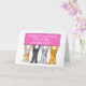 Quatre chats caricaturaux tiennent un grand panneau rectangulaire rose qui dit "Félicitations Deux ans sans cancer".