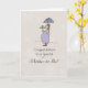 Félicitations à la maman d'être sur sa grossesse. Cette jolie carte montre une maman qui s'occupe de sa petite bosse avec un mini parapluie. Parfait pour un baby shower !