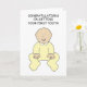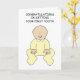 Dessin d'un bébé mignon en tenue jaune, dressé contre un arrière - plan blanc immaculé. Le bébé montre une dent. Les mots "Félicitations pour avoir obtenu votre première dent" accompagnent l'image.