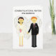 Cette charmante carte est pour ce couple spécial qui a franchi le pas du mariage après leurs fiançailles pleines de joie. Peut-être étiez-vous là pour leur jour de mariage ou peut-être pas, mais dans tous les cas, vous vouliez leur envoyer une carte qui dit à quel point vous vous souciez d'eux. À l'extérieur se trouve un design épuré et moderne représentant une mariée et un marié élégants, mais ils sont dessinés en style cartoon et pourraient représenter presque n'importe qui. C'est drôle, avec une touche rustique mais surtout moderne. Au dos se trouve un ensemble de cœurs inspirés de l'aquarelle, mais nous vous encourageons à le remplacer par une photo de vous-même pour rendre la carte encore plus personnelle. À l'intérieur, nous avons écrit juste le message qui convient pour parler au moment présent ; mais juste au cas où il aurait besoin de quelque chose de personnel, vous pouvez le personnaliser