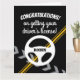 Félicitations pour l'obtention de votre carte de permis de conduire. Carte de vœux amusante avec des panneaux de signalisation routière et un logo de volant. Personnalisé avec un nom et un message personnalisés. Parfait pour un nouveau conducteur qui réussit un examen de test. Grande carte extra large pour lui ou elle.