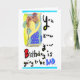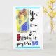 Carte d'anniversaire humoristique montrant une porte-parole en train de se sécher les cheveux.