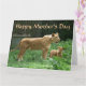Belle photo d'une lionne de mère avec son petit animal. La couverture indique" le message d'intérieur ""du jour de mère heureux à une maman féroce" personnalisable. Sur des 8 cartes 1/2 x 11 surdimensionnée
