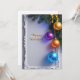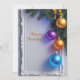 Design festif de Noël avec cadre orné, baubles colorés et branches à feuillage persistant. Parfait pour les décorations saisonnières, les invitations de vacances ou les salutations festives.