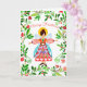 Une carte de voeux de vacances moderne et gaie, avec un ange d'art populaire inspiré entouré de motifs de fleurs festifs. Ce doux petit ange de Noël est habillé pour une fête de Noël vibrante. Votre carte sera imprimée sur votre choix d'options de papier. Personnalisable avec votre texte à l'avant et à l'arrière. Faites cette carte spéciale avec votre propre message personnel. Que votre maison soit remplie d'amour et de joie ce Noël et toujours. Paix.