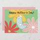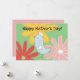 Oiseau-mère entouré de fleurs colorées surdimensionnées. Cette carte plate est verte sur le dos, avec une zone pour vous d'ajouter votre message.