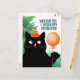 Carte de voeux d'anniversaire avec chat noir, plante et ballon. ♥ Collection correspondante pour la COORDINATION DES ARTICLES. ♥ Oeuvre originale de PUPSIKU STUDIO. Produit 100% exclusif.