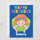 Belle fête de piscine pour enfants Bonne carte d'anniversaire pour un enfant roux dans l'équipe de natation en été. Dispose d'une pop de couleurs éclatante et amusante et d'une adorable nageuse dans un tube intérieur. Personnaliser pour un cadeau spécial pour enfants.