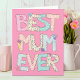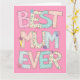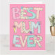 Célébrez la fête des mères avec cette carte rose avec un texte fantaisiste qui dit "Meilleure maman jamais". Ajoutez vos propres mots d'amour à l'intérieur de cette carte sans effort avec le modèle de texte fourni.