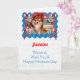 Un mignon porte-rick bleu et un ruban de curling rouge est jumelé avec des empreintes de pattes et des os sur ce carte photo sucré pour la maman du chien lors de la fête des mères et présente ses propres compagnons canins photo, nom et un message personnel que seule son ami en colère trouverait! Ce design exclusif est offert en d'autres couleurs - pour les mamans de chat - par PAWSitivelyPETrageous.com.