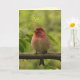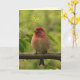 Cette carte de Fête des pères est dotée d'un beau pinceau violet assis sur une branche, entouré de feuilles verts. Il a une tête rouge brillante et une poitrine rose pâle. Son bec robuste est parfait pour craquer les graines. C'est l'oiseau que le célèbre ornithologue Roger Tory Peterson décrit comme un "moineau trempé dans le jus de framboise". Un autre petit oiseau bavard est à l'intérieur. Le texte peut être customisé pour votre occasion spéciale.