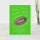 Blagues de football pour la carte d'anniversaire du mari. Un terrain de football avec un ballon de football lancé et beaucoup de mauvaises blagues de football. Un footballeur ou un fan obtiendra un gros coup de pied sur cette carte ! Copyright Norma Cornes.