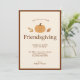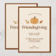 Friendsgiving Minimal Citrouille Feuilles Thanksgiving invitation. Une aquarelle citrouille et des feuilles d'automne délicates encadrent "Friendsgiving" en typographie simple. Design saisonnier équilibré et chaleureux. OEuvre assistée par l'IA. Je peux gagner une petite commission à partir de liens affiliés.