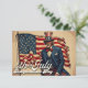 Une figure patinée mais fière se tient devant un drapeau américain en lambeaux—sa présence est un hommage à l'esprit durable de liberté, de résilience et du rêve américain. Cette image capture l'essence du Jour de l'Indépendance avec dignité poétique et force patriotique.