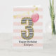 Carte Fille de 3 ans pailletée rose et or