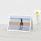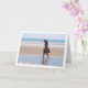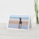 Carte de vœux Fille en jupe marchant sur la plage. Vous pouvez facilement personnaliser ce produit gratuitement si vous souhaitez ajouter du texte ou changer la couleur de l'arrière-plan.