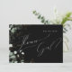 Entrez dans un monde enchanteur avec notre verdure fantaisiste noir et or | carte fille fleurie, parfait pour votre mariage botanique de printemps. Ornée d'eucalyptus vert sauge et d'accents dorés, cette carte fleurie exsude l'élégance et de fantaisie moderne. Imaginez vous promener dans un jardin d'été magique, entouré par les sons apaisants de la nature. Le design saisit sans effort le charme rustique de l'automne avec ses teintes vert clair, évoquant la beauté de la saison changeante. Avec une touche de sophistication minimaliste et une touche bohème classique, les détails chatoyants de la feuille d'or ajoutent une touche de glamour et de romance. Complète d'une gracieuse allure de conte de fées, cette carte fleurie exsude la classe et met en valeur la splendeur naturelle de l'automne. N'hésitez pas à nous contacter pour toute question sur le design, et laissez-nous vous aider à faire le mariage de vos rêves.