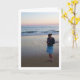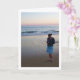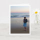 Carte de vœux Fille sur la plage au coucher du soleil. Vous pouvez facilement personnaliser ce produit gratuitement si vous souhaitez ajouter du texte ou changer la couleur de l'arrière-plan.