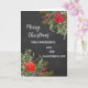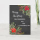Joyeux Noël pour fils et fille en droit carte en aquarelle rustique poinsettias et feuillage et arrière - plan de tableau noir.