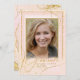 Un arrière - plan d'aquarelle dans les tons or rose est surmonté d'une abstraite de lignes dorées fines et d'effets lumineux scintillants pour créer cette belle invitation à la graduation. La carte comporte également une calligraphie élégante et un cadre en dégradé pour tenir votre photo. Ajoutez facilement vos propres détails personnels à l'aide du modèle fourni. Recherchez ID867 pour voir d'autres pièces et choix de couleurs pour cet ensemble.