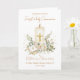 Carte First Holy Communion Candle Bible Greenery Leaves
