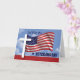 American Flag waves in the background with a white cross in the foreground. Christian card to show appreciation as you thank someone for their service on Vétérans Day. Parfait pour ou woman.