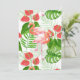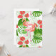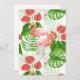 Aquarelle design motif avec des fleurs et des oiseaux flamands, la monstère et les feuilles de palmiers.