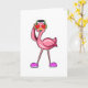 Carte Flamant rose avec casque audio & coeurs