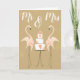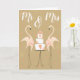 Un design mariage amusant et élégant avec une touche rétro pour. Une paire de flamants de pêche se tient de chaque côté d'un gâteau de mariage avec des coeurs de pêche, des confettis, des anneaux d'or et des courbes contre un arrière - plan neutre de changement de couleur brun. Un design personnalisable pour personnaliser avec votre propre texte, images et idées. Une image art numérique originale.