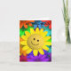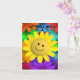 Fleur adorable et mignonne de visage heureux jaune reposant sur un lit de fleurs aux couleurs néons vives. Coloré et gai.