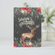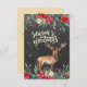 Joyeux script de typographie brossée à la crème Happy Holidays et un renne aquarelle peint à la main contre un arrière - plan en damier gris foncé avec bordures florales hivernales avec roses de pivoines rouges et blanches, poinsettia et feuillage saisonnier, pinecones et boughs de pin faisant une rustique merveilleuse campagne moderne vacances d'hiver / carte de voeux de Noël. ++++++++++++ Personnalisez-le avec votre texte et votre signature à l'envers ! +++++++++++++ Convient pour les envois saisonniers en famille, en entreprise ou à des particuliers.