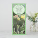 Cette belle carte montre un jardin de fleurs de cactus jaunes fleurissant après la première pluie de printemps. Le verset de la Bible sur le devant est Chant de Salomon 2:11-12 qui dit : "Car voici, l'hiver est passé; la pluie est finie et disparue. Les fleurs apparaissent sur la terre, le temps du chant est venu..." Les mots sur le dos disent, "Le temps de la guérison et du chant est venu.