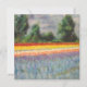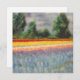 Carte 1 de 3 Champs de fleurs de printemps paysage avec triptyque de peinture de moulin à vent panneau d'art fin 1 de 3 imprimer carte d'invitation avec jacinthes bleus colorés, tulipes et jonquilles jaunes narcisse fleurs et un moulin hollandais en Hollande.