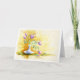 Carte du jour de mère avec le sujet des fleurs pourpres dans le vase. Art original de couleur d'eau sur le papier texturisé. Conception basée sur la forme de vase qui était un cadeau d'ancien patron, Lynn.