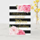 Bonne carte de 20ème anniversaire avec fleurs d'aquarelle rose, rayures noires et verset réfléchi.