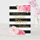 Bonne carte de 50ème anniversaire avec fleurs d'aquarelle rose, rayures noires et verset réfléchi.