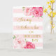 Carte de Fête des mères pour belle-mère avec rayures roses saumon, fleurs aquarelles roses et vers sentimental.